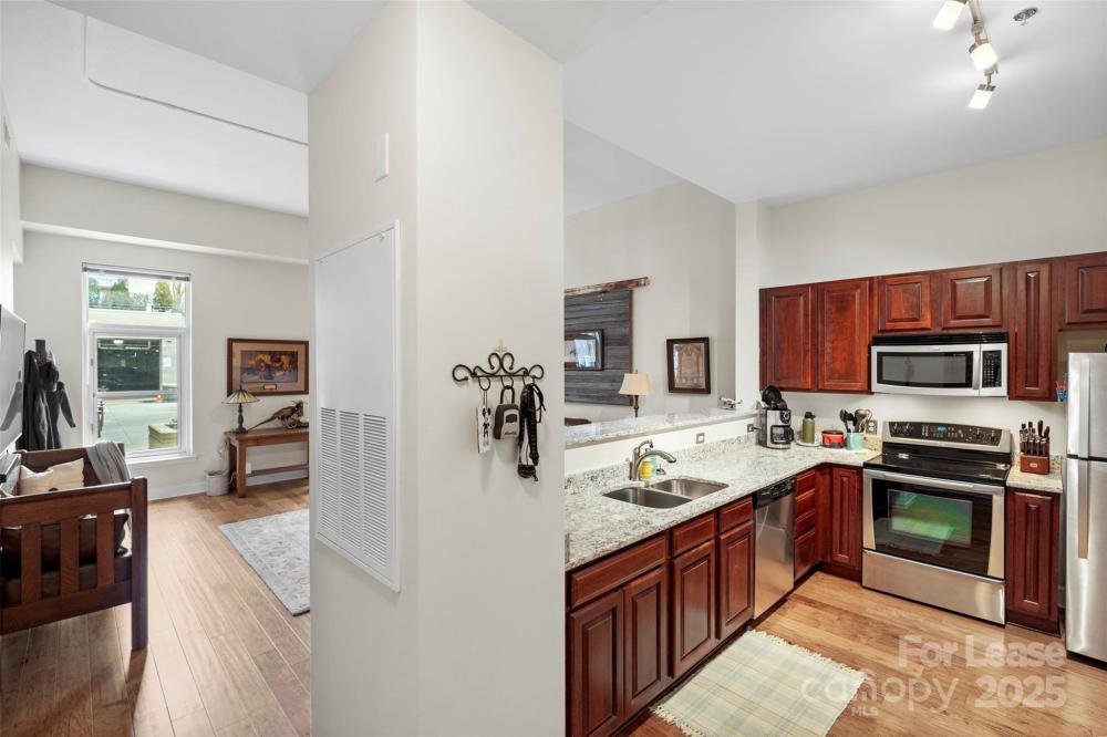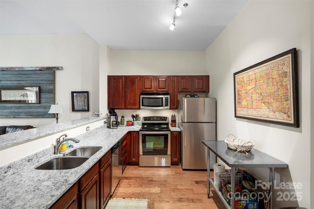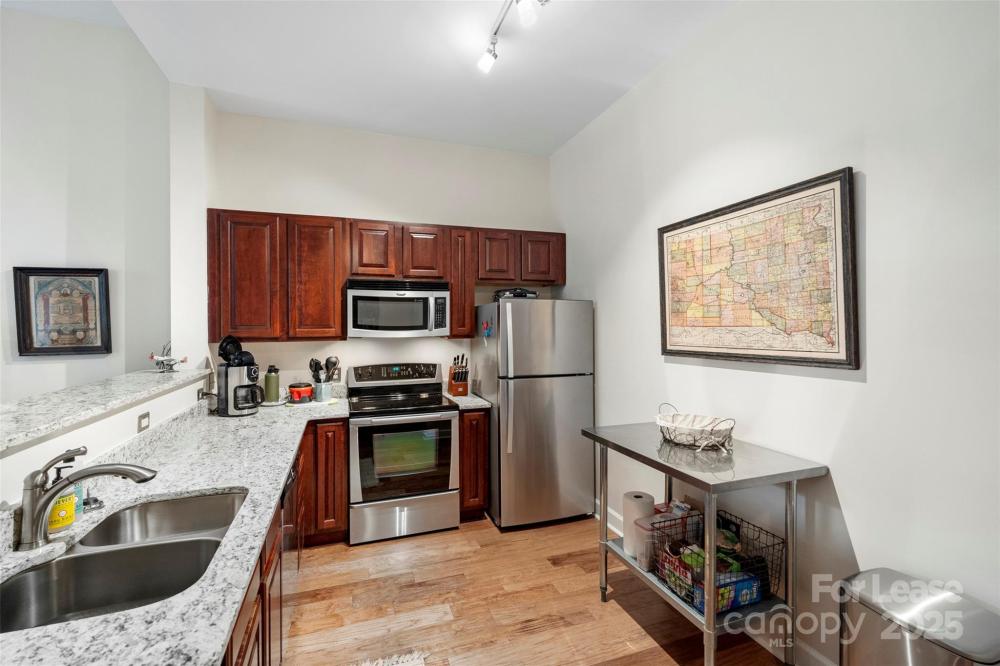 One of the largest one bedroom in the building. Fully updated and has entrance from hallway + direct access to 2nd floor (waterfall) courtyard for easy access outside. Building is concrete & steel construction with lots of secure entrance parking plus fitness center & rooftop terrace. The location in Dilworth is fantastic! Walkable to grocery stores, restaurants, shops, Freedom Park, Atrium Hospital and uptown is just 3 min away.