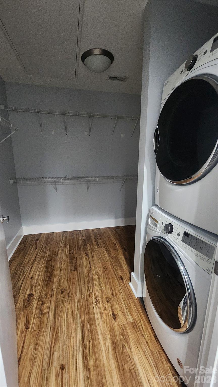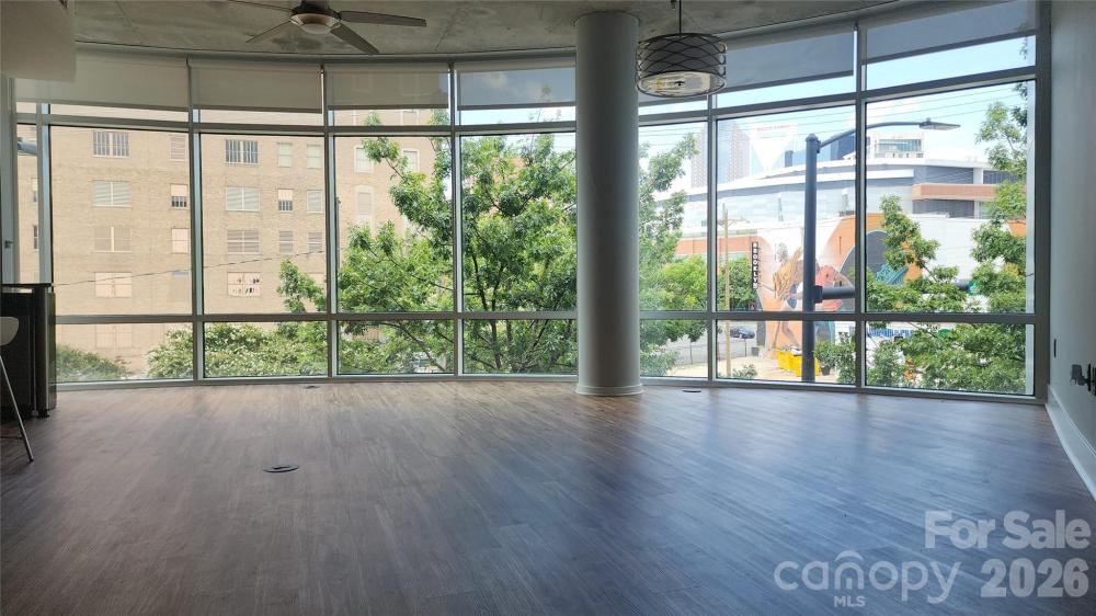 Move in Ready! INSTANT EQUITY!! Unit priced $160,000 below RECENT Sale of "like" Unit in building. This luxury corner unit in the heart of Uptown Charlotte offers unmatched value and style. Boasting over 1,900 sq ft, the expansive open floorplan is wrapped in floor-to-ceiling windows, flooding the space with natural light and offering stunning year-round views of the Charlotte skyline. The primary bedroom also features floor to ceiling windows providing skyline views. The OPEN layout allows you to separate spaces while still being a part of every conversation. Unit features New wood flooring throughout, ceiling fans, walk in closets, dual vanities and huge covered patio. Washer and dryer included. There are also 2 deeded parking spaces in the secure gated garage. An Amazon Hub is located in garage to assure the safe delivery of packages without you being there.